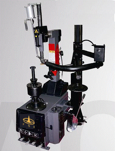 本品为自动后倾式扁平轮胎拆装机,配有自动摆臂式助力装置,配有气动举胎机构,气动锁紧装置。