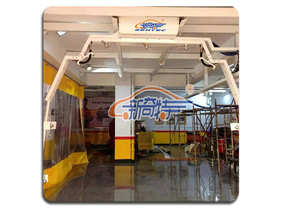 无接触式洗车机摆臂采用M形折弯,合理分配喷头位置和角度,更加贴合车身,真正做到360°无死角洗车;