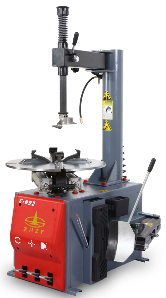 Clamping head, dismounting head and pressing tire shovel are provided with protective sleeve, which further protects tyre rim from damage caused by operation error.